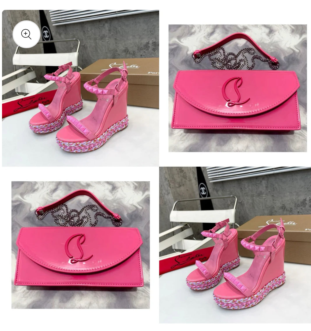 Pink wedge heel & bag set